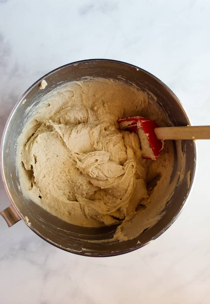 - Turn the mixer to medium speed and beat for 9 minutes.